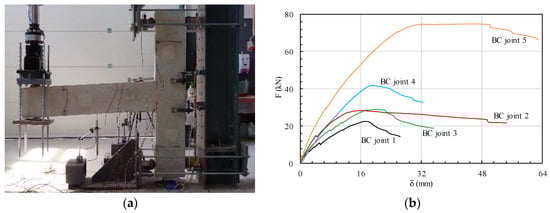 28] focused on the behaviour of exterior beam-to-column joints made with LWAC and under monotonic loads was conducted. Five specimens were produced combining two different reinforcement ratios and LWACs with two different strengths. The concrete adopted had a compressive strength of 35 and 55 MPa, and the tensile reinforcement ratio was 1.12 and 2.96%. Four specimens had the same cross-section, 120 × 270 mm