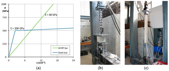 The GFRP rebars also have the advantage of presenting high tensile strength and, in addition, of being easy to cut and carry. Their disadvantages are that they cannot be bent at the construction site and they exhibit low strength to shear and compressive forces. Ribs of GFRP rebars are also different from those of steel rebars, and the Young’s modulus is significantly lower, which undoubtedly affects the structure’s behaviour [