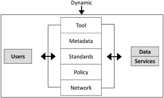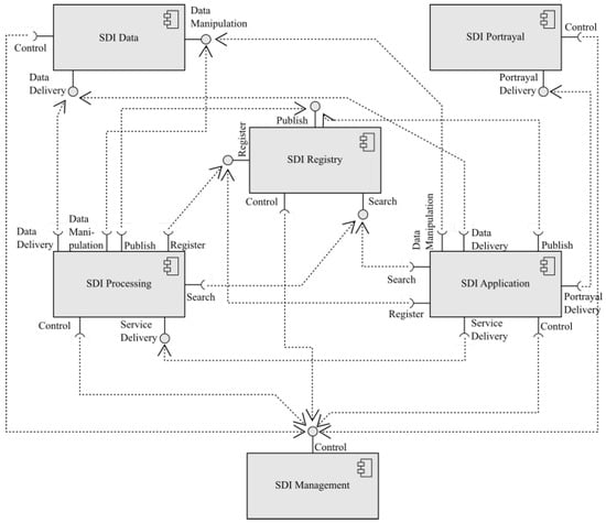- Hjelmager, J.; Moellering, H.; Cooper, A.; Delgado, T.; Rajabifard, A.; Rapant, P.; Danko, D.; Huet, M.; Laurent, D.; Aalders, H.; et al. An initial formal model for spatial data infrastructures. Int. J. Geogr. Inf. Sci. 2008, 22, 1295–1309. [Google Scholar] [CrossRef]