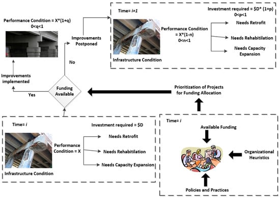 - Mostafavi, A.; Abraham, D.; DeLaurentis, D.; Sinfield, J.; Kandil, A.; Queiroz, C. Agent-Based Simulation Model for Assessment of Financing Scenarios in Highway Transportation Infrastructure Systems. J. Comput. Civ. Eng. 2015, 30. [Google Scholar] [CrossRef]