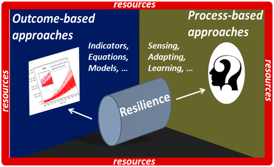 Figure 1. Integrated approach of resilience. Resilience approaches may be based on outcome- or process-based approaches under resources constraints. The purpose is to nest process-based approaches into outcome-based approaches under resources constraints in order to have an integrated view of resilience that fits both approaches.