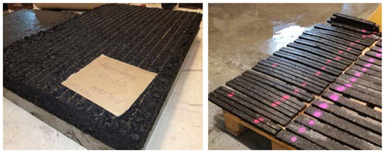Prefabricated asphalt (AC-14) specimens with grooves for preparation of FBG embedment.