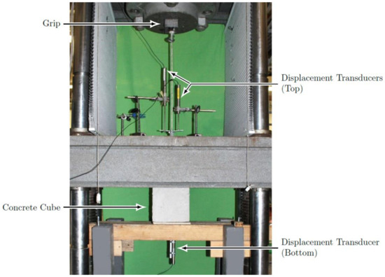 - ASTM International. ASTM C39—Standard Test Method for Compressive Strength of Cylindrical Concrete Specimens; ASTM International: West Conshohocken, PA, USA, 2016. [Google Scholar] [CrossRef]