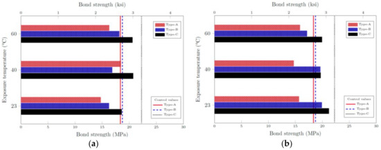 The experimental results obtained from the 63 specimens tested were analyzed following the specifications defined in ASTM D7913 [8]. The bond strength was computed using the following Equation (1):