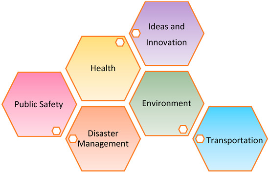 Smart city solutions have already been implemented in many parts of the world and there have been many success stories as well as lessons to be learnt from some challenging obstacles faced in their implementation. The core infrastructure elements of a smart city include electricity, water, energy, sanitation, housing, education, transport, Information Technology (IT) connectivity, health and safety. It also targets improvement of the resilience of these infrastructure systems in case of emergencies. The following section discusses some of the existing smart city applications in some fields as mentioned in Figure 2. The applications that make use of crowdsourcing to collect data in these fields have also been summarized in Table 1.