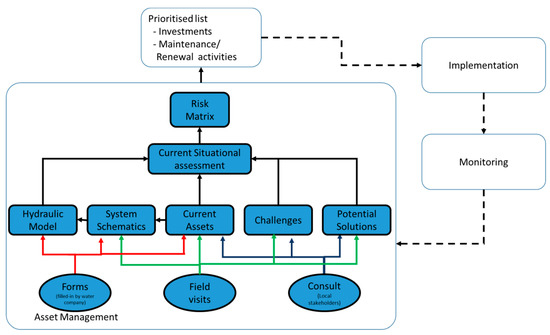 - Pathirana, A. Introduction to Asset Management. In Asset Management Module; Pathirana, A., Ed.; IHE Delft Institute for Water Education: Delft, The Netherlands, 2006. [Google Scholar]