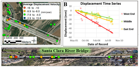 - Huang, Q.; Crosetto, M.; Monserrat, O.; Crippa, B. Displacement monitoring and modelling of a high-speed railway bridge using C-band Sentinel-1 data. ISPRS J. Photogramm. Remote Sens. 2017, 128, 204–211. [Google Scholar] [CrossRef]