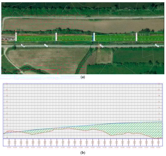 Application of the BIM methodology was demonstrated on a section of the case study track measuring 1787 meters in length. A straight part of the rail track was selected that was considered representative of the case study. Two-Dimensional (2D) representations of the elements of the project are available in paper format or as pdf files [].