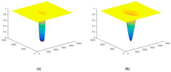 The two most common frequency domain edge detection filters include Butterworth [45] and Gaussian [45,46,47] high pass filters. High pass filters attenuate frequencies above some defined cutoff frequency . Equation (10) gives the general form of the th-order Butterworth filter kernel , where is the distance between the pixel and the origin of the frequency (the center of the M × N image), as defined by Equation (11).