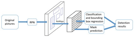 - He, K.; Gkioxari, G.; Dollár, P.; Girshick, R. Mask r-cnn. In Proceedings of the 2017 IEEE International Conference on Computer Vision (ICCV), Venice, Italy, 22–29 October 2017; pp. 2980–2988. [Google Scholar]
