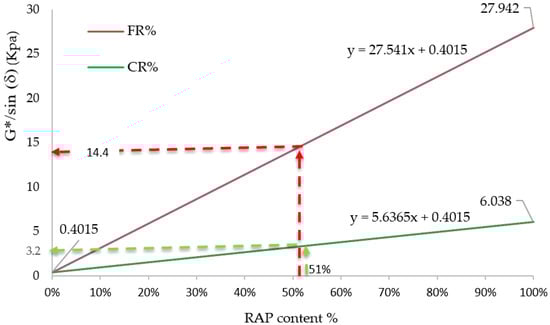 29]. In blending, it is assumed that there is a linear relationship between the amount of RAP bitumen and the rigidity (or DSR results) at a given temperature.