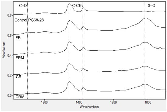 A Fourier transform infrared spectroscopy (FTIR)–ATR (attenuated total reflection) analysis was done on all bitumen and bitumen mixes;