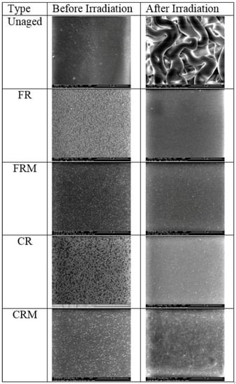 After the sample was exposed to the electron beam, and the accumulation of energy irradiated the sample, the asphalt bitumen tended to reveal a ‘fibril’ microstructure as lighter components of the bitumen dispersed [