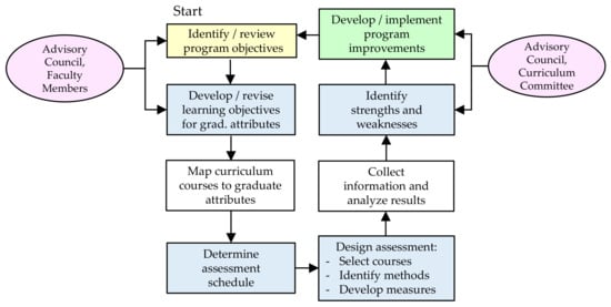 Typical process of graduate-attribute assessment (faculty-level activities are shaded in blue) [].