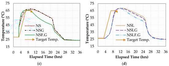Temperature history for accelerated curing in S3000 (a,b) and S4000 (c,d).