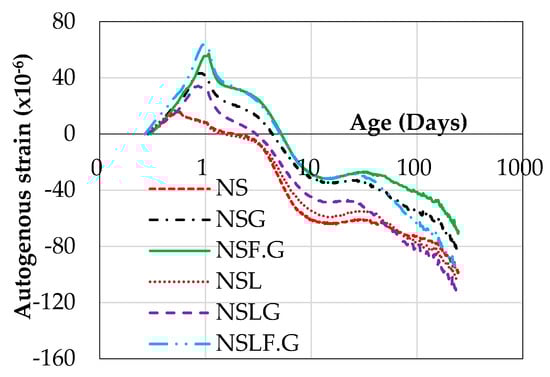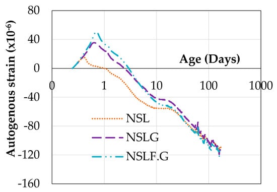 3.5. Autogenous and Drying Shrinkage, Sealed and Accelerated Cured Concrete