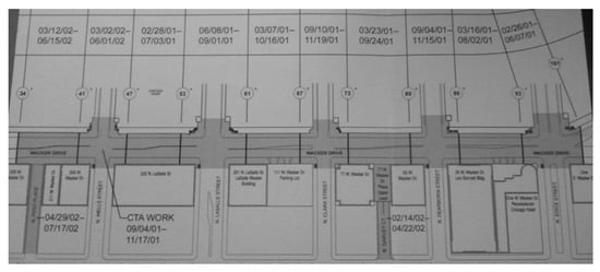 - Wacker Drive Construction Project, Chicago, Ill. Deptarment of Transportation, Bureau of Bridges and Transit, 2002. Available online: https://www.worldtransitresearch.info/research/1555/ (accessed on 21 March 2020).