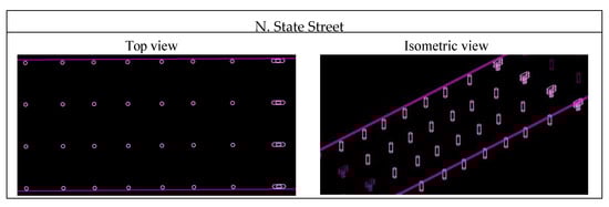 The 3D model of the lower Wacker Drive was created in MicroStation based on the 2D design in DGN format. Each column was assigned a position in its own layer with location information. The geo-information of the 3D model was extracted to calculate the number of points in the point clouds of the objects involved in each activity. Figure 11 presents an example of a 3D model of the columns and deck in N. State Street.