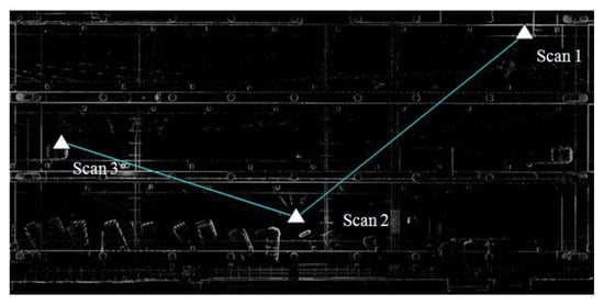 Due to the conditions in the construction site, an ideal setup was not possible. The location of the scanner depended on the situation in the field. In addition, scans were performed before or after work hours, typically in the early morning or late evening to avoid people and traffic. The layout of the scanner’s locations is shown in Figure 13. In total, 23 scans were performed in this study.