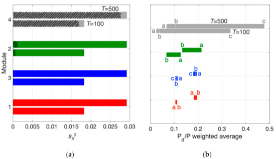 Quantitative information about sensitivity can be gained from Figure 10a, showing the module importance ranking obtained from weighted ANOVA (see Section 2.4), for return periods of 100 and 500 years. Each module is displayed with two bars indicating the total variance for the two return periods; the hatched portion of the bars indicates the variance between groups and thus the importance of the module in terms of contribution to the total epistemic uncertainty. It can be readily observed that the building fragility model has the highest importance, whilst the contributions of Mmax and are negligible. Figure 10a provides a clear indication of the modules having the largest impact and thus deserving increased “knowledge” (in terms of enhanced modelling, additional data for calibration, etc.), in the effort to reduce the total epistemic uncertainty in the problem.