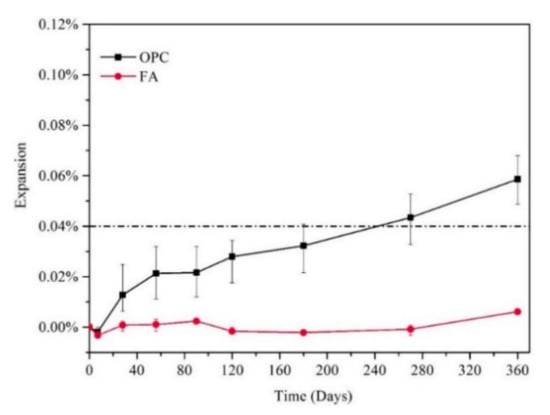 - García-Lodeiro, I.; Palomo, A.Y.; Fernández-Jiménez, A. Alkali–aggregate reaction in activated fly ash systems. Cem. Concr. Res. 2007, 37, 175–183. [Google Scholar] [CrossRef]