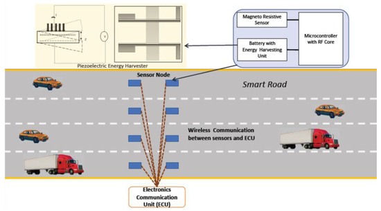 4], people in these communities will be exposed to a high number of circulating vehicles and therefore roadway infrastructures need to be upgraded with innovative devices and materials that guarantee efficient traffic management. With the installation of devices known as Intelligent Transport Systems (ITSs), the so-called “Smart Mobility” will then be implemented. Moreover, the benefits offered by such devices have already been acknowledged, considering that in countries where ITSs were introduced first (USA, Europe and Japan) and as reported by the European Commission, their application achieved 15–20% of travel time reduction and 12% less energy waste, and above all emissions decreased by 10%. In comparison, there was a 10–15% reduction in accidents and a 5–10% network capacity increase in safety and roadway capacity [