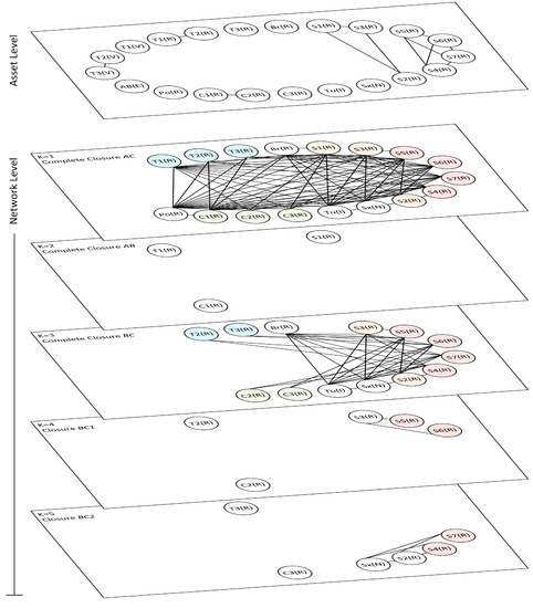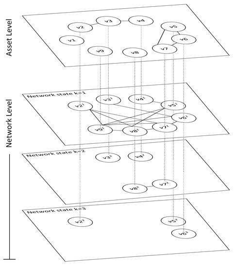 In step ten, the network level model introduced in Section 3.2 is constructed. The network level is graph consisting of the nodes and edges . This subgraph of is a multi-layer graph with layer representing network states.