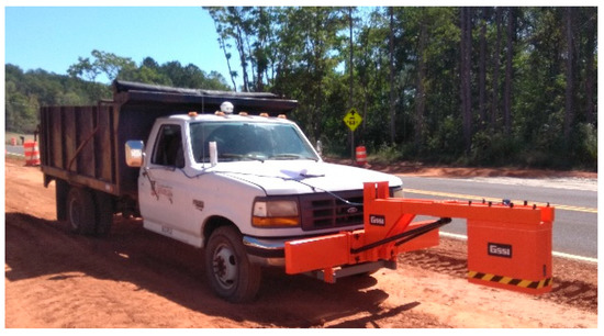 A 2 GHz air-coupled GPR antenna system is being used for this study. The GPR system was manufactured by Geophysical Survey Systems, Inc (GSSI). As depicted in Figure 1, the antenna was mounted in front of a truck, with the control unit set inside of the driving cabin. The global positioning system (GPS) device was used to precisely locate the data collected with the GPR longitudinally on the road. Figure 2 shows the data acquisition system to collect GPR and GPS data. The data acquisition system should be calibrated before each scan in order to validate the signals with a perfect reflection on a metal plate. In addition, this calibration provides some preliminary data for the data processing, with Am (amplitude of the reflected wave on the metal plate) to estimate the dielectric constants for the subsequent layers in order to calculate the density for the targeted layers by the GPR scan.