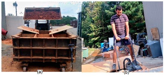 Subgrade soil preparation (a) soil placement, (b) soil compaction.