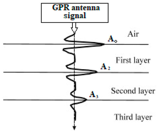 Figure 5 shows a schematic diagram of the reflections of a GPR signal from a layered pavement system.