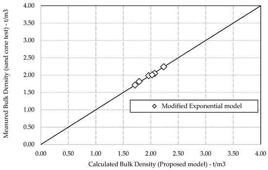 The results from the modified exponential model (Equation (12)), show good agreement with those measured by sand cone lab test. As shown in Figure 10, this model gives a good estimate, with a maximum error of 2.1% of the measured bulk density.