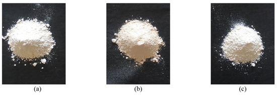 Sample of metakaolin products (a) MK1; (b) MK2; (c) MK3.