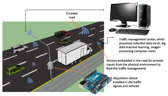 In addition, it is important to note that, with the emerging concept of smart cities, the mentioned benefits of MAMs would greatly benefit and be used in harmony with already existing smart systems. These other systems include smart sensors (both in the road and on vehicles and traffic signals), artificial intelligence (based on machine learning), image processing, big data and computer vision, to develop better traffic management systems and manage the road network in real time [61,62,63,64,65,66] (Figure 7).