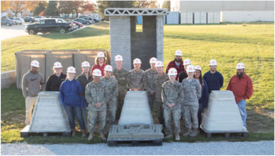 In November 2019, U.S. Marines from the 7th Engineering Support Battalion (7th ESB), an Air Force officer from the Air Force Institute of Technology, and researchers from the Army Engineer Research and Development Center—Construction Engineering Research Laboratory (ERDC-CERL) demonstrated the viability and simplicity of three-dimensionally (3D)-printed construction in a controlled environment at ERDC-CERL in Champaign, Illinois. The demonstration was part of Exercise Burgeon Strike, a tri-service exercise with one primary objective: to show how easy 3D-printed construction can be. Specifically, the exercise aimed to prove that 3D-printed design and construction can be taught to anyone, accomplished with only two laborers, and used in a range of diverse applications. Exercise Burgeon Strike is one of a series of advancements to military 3D printing efforts achieved by ERDC-CERL in recent years.