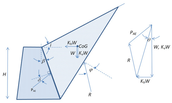 The application of the Mononobe–Okabe approach for a typical RCRW is shown in Figure 2.