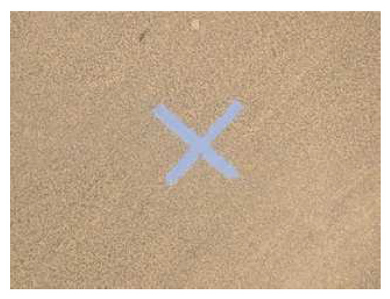 All cameras are calibrated using a set of 2D-3D correspondences [44]. To this end, ×-shaped symbols were indicated with a paint marker (standard deviation signal marker location: 2 mm) on the bridge deck (Figure 6), making them easily recognizable and uniquely identifiable in the images. Their world position was measured using a total station (standard deviation measurement error: 1 mm). The collection of 331 calibration points comprises 176 marks on the bridge deck, 23 on the transverse stiffeners, 44 on the web plate of the parapet and 88 points on top of the parapet.