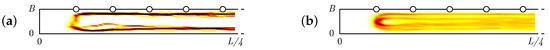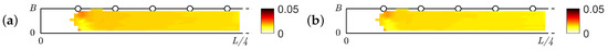 Heat map of the position for the case of walking for half a bridge deck during the test setup W148_free1: (a) a single pedestrian and (b) the entire crowd.