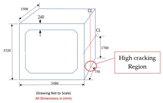 In this study, the influence of adding LSP and F.GYP in concrete mix proportions on cracking tendency was investigated. Two concrete mix proportions used include N + BFS and N + BFS + LSP +F.GYP. A typical concrete precast box culvert model member was used for the analysis as shown in Figure 9 []. Note that haunches were not included in the 3D FEM model as shown in Figure 10.