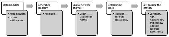 The number of intervals was five because it was possible to identify on a five-class scale, the areas with the greatest and least absolute accessibility. In this way, the differences in accessibility between the analysed areas could be analysed in more detail. Thus, it was possible to categorize the territory in five classes: very high, high, medium, low, and shallow index of absolute accessibility.