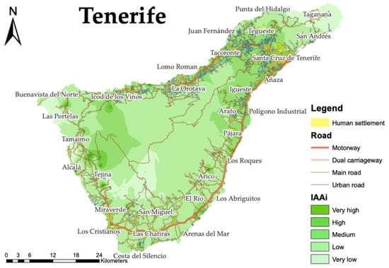 According to ESPON INTERCO: “Remote regions (islands) have by far higher disparities compared to urban regions or regions located close to a city”. The favored positions have a town with a combination of proper road infrastructure in the form of dense motorways and a high population concentration. Accessibility by road decreases towards towns located in the core of islands in general. Low accessibility by road is found on Tenerife island in about 57% of settlements. Additionally, most regions have some parts of territories with very low accessibility. In those islands, accessibility always improves when new infrastructure is built. However, exceptions can be regions where population declines when considering the cost of using infrastructure endowment [32,33,42].