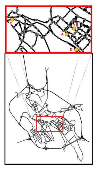 The calibration of the model is performed using the same data collected in the testing campaign reported in [59] in the city of Benevento. These data refer to four road sections (see Figure 1) representative of the prevailing type of roads in the urban network; the pavement was bituminous in all cases.