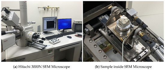 The scanning electron microscope technique is one of the well established methods to investigate the surface structure of materials. SEM produces images by probing the sample with a focused beam of electrons, which interacts with atoms on the surface to produce various signals that contain information about the material [23]. SEM equipment is coupled with a chemical analysis apparatus such as an energy dispersive X-ray spectroscopy (EDS). This apparatus can detect the characteristic of X-rays produced from interaction of electrons with the sample material [24]. For the experimental study, Hitachi 3000N SEM Microscope has been used to perform both SEM and EDS. Hitachi 3000N SEM Microscope was operated to examine cubed samples at low vacuum (VP-SEM) (Figure 1a). Back-scattered electron imaging (BSE) was performed to detect with a low acceleration voltage ranges from 15 kV to 25 kV. Sample cubes were mounted on a 15mm metal disk using carbon tape.