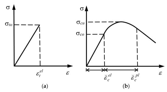 - Lubliner, J.; Oliver, J.; Oller, S.; Oñate, E. A plastic-damage model for concrete. Int. J. Solids. Struct. 1989, 25, 299–326. [Google Scholar] [CrossRef]
