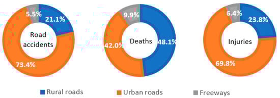 Road accidents, deaths and injuries for different road categories. Source: Italian National Institute of Statistics—Istat (2018).