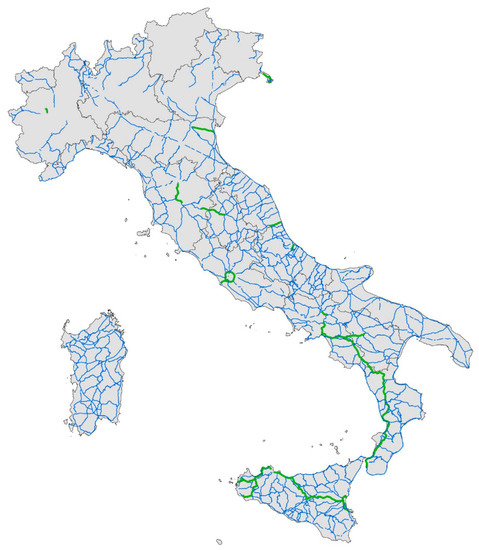 Since the Italian state roads are spread throughout the national territory and about 90% of this network is managed by the company ANAS S.p.A., the choice of the road network to analyze has fallen on the roads managed by this company, shown in Figure 3.