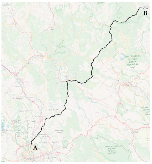 Conventionally the direction of the distance has been taken from point A to point B, linking Rome to Ascoli Piceno, as it can be seen in Figure 5: