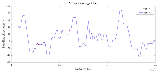 Subsequently, the Savitzky–Golay filter was applied to the heading angle trend for the purpose of smoothing the data, to increase their precision without distorting the signal tendency.