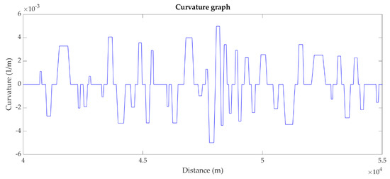 Figure 13 shows the curvature graph for the segment taken as an example between the distance 40 km and 55 km: