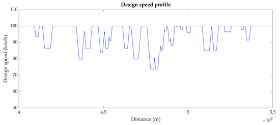Design speed profile of the HWY 4—from the distance 40 km to the distance 55 km.