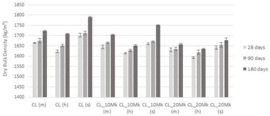 Results obtained on the flow table consistency show that, for the same ratio of water/binder (the binder being the sum of air lime and Mk), the replacement of lime by Mk seems to tend to reduce the flow but without jeopardizing workability. That is not the case for instance when brick dust is added; that type of pozzolanic addition may have a great influence on fresh mortar behaviour because of the significant water absorption during mortar preparation []. However, the reduction did not correspond to the Mk content. As expected for air lime mortars, good workability was obtained, even with a low flow.